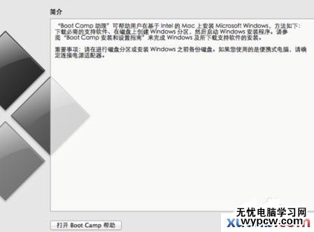 2在彈出”Boot camp助理“-簡介窗口,點擊”簡介“窗口右下角”繼續(xù)“按鈕。