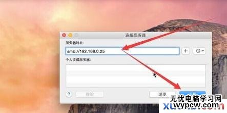 4、輸入要共享的地址,格式為"smb://192.168.0.1" 其中的ip地址為你要訪問的電腦ip。