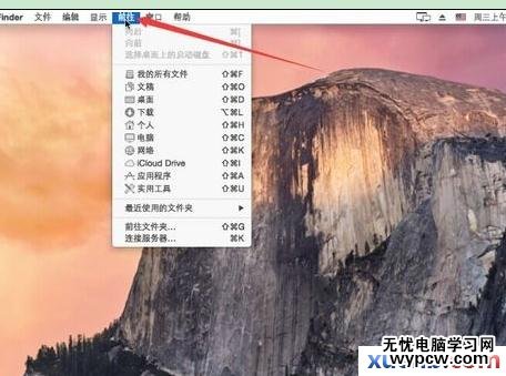 2、蘋果MAC系統(tǒng),點擊桌面。打開頂部菜單 “前往”。