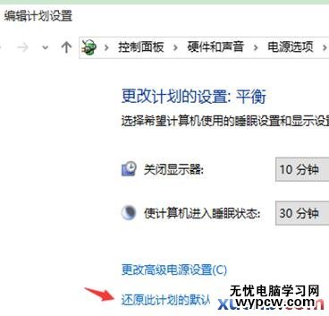 當然,還可以點擊“還原此計劃的默認設置”來還原所有之前設置過的內(nèi)容