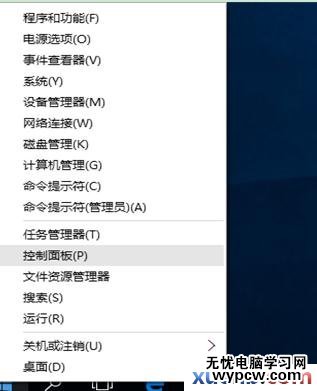 首先在windows10系統(tǒng)的桌面上,用鼠標右鍵點擊左下角的win圖標,然后在彈出的列表中點擊“控制面板”