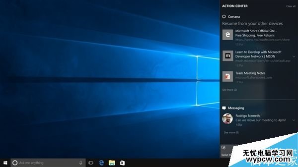 更換電腦后,在操作中心小娜可以顯示相關鏈接,幫助返回到最近經常使用的Edge瀏覽器頁面和SharePoint文件,或者其他基于云的應用。