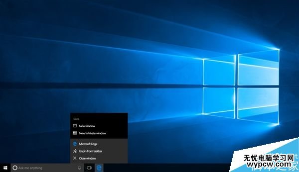 可以通過任務欄為Edge瀏覽器直接啟動新的普通或者InPrivate窗口。單擊鼠標右鍵或將鼠標箭頭滑動到任務欄中的Edge瀏覽器圖表即可。