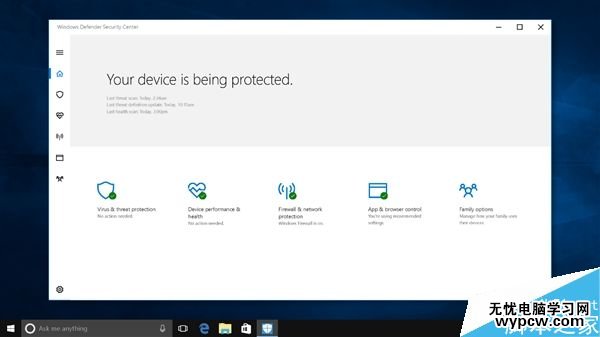 帶來了單獨的儀表板,可以掌控安全選項,包括病毒防護、網絡和防火墻保護、設備性能和健康狀況、應用程序和瀏覽器安全控制,以及家庭控制選項等。