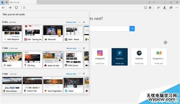 退出打開的選項卡后可快速恢復,還可以預覽網頁縮略圖,選擇恢復當時離開的單個或若干網頁。