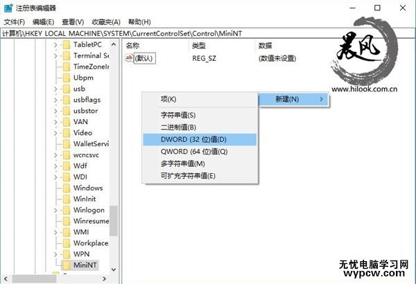 4、新建項,命名為MiniNT