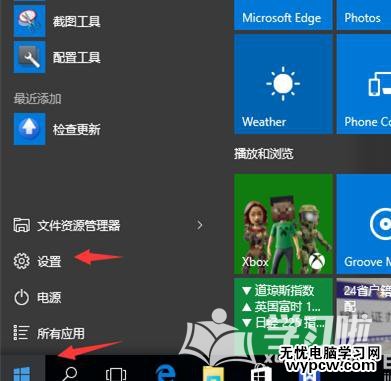 首先打開windows10系統(tǒng),然后點(diǎn)擊桌面左下角的win圖片,在彈出的列表中,點(diǎn)擊“設(shè)置”。