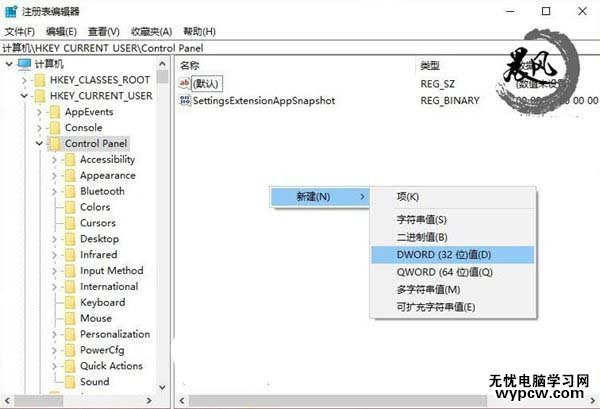 2、定位到HKEY_CURRENT_USER/Control Panel