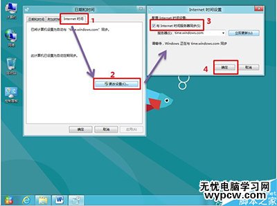 windows8設(shè)置自動(dòng)同步系統(tǒng)時(shí)間的方法一: