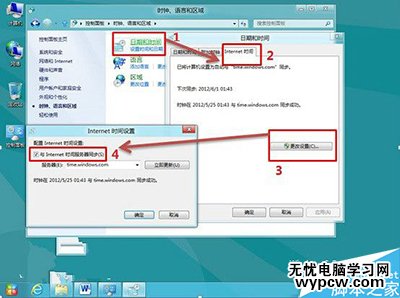 Windows8設(shè)置自動(dòng)同步系統(tǒng)時(shí)間的方法二: