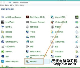 3、進入“所有控制面板項”界面,點擊“用戶帳戶;