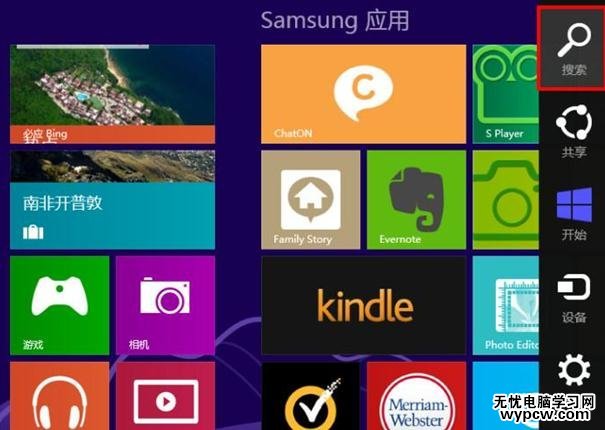 1. windows 8.1系統有一個Metro,我們進入之后在Metro中找到【搜索】圖標點擊它,如下圖所示。
