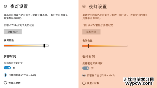 顯示器的顏色由紅綠藍(lán)三種原色混合而成,夜燈模式就是減少了其中的冷色藍(lán)色,屏幕呈現(xiàn)出的顏色會(huì)變得偏黃偏紅,使眼睛不易疲勞,在夜燈設(shè)置中我們可以對(duì)具體的色溫進(jìn)行調(diào)節(jié)。