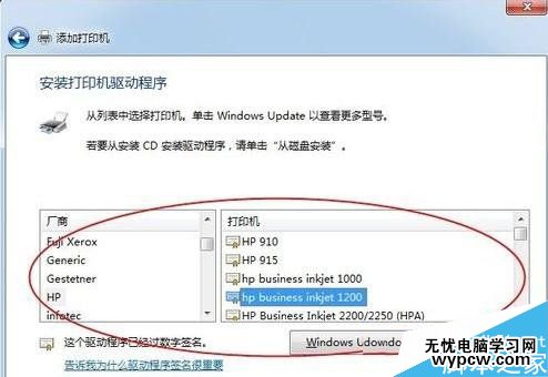 這里選擇打印機品牌以及打印機型號,以便于系統匹配打印機驅動程序。品牌和型號打印機上面銘牌上就有。如果列表中找不到,請自己下載好驅動,點擊右下角“從磁盤安裝”。點擊下一步