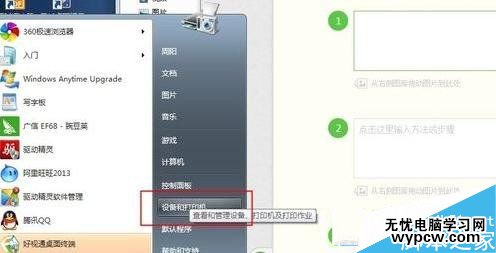 首先點擊桌面左下角“開始”—“設備和打印機”選項