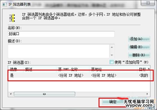 7、返回到“ip篩選器列表”,點擊“確定”。返回到“新規則 屬性”對話框