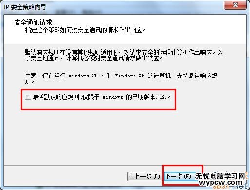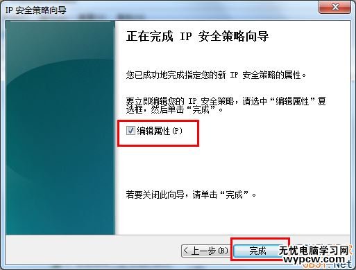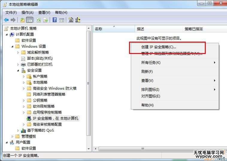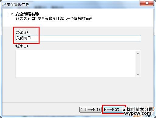 2、在本地組策略編輯器右邊空白處 右鍵單擊鼠標,選擇“創建IP安全策略”,彈出IP安全策略向導對話框,單擊下一步;在出現的對話框中的名稱處寫“關閉端口”(可隨意填寫),點擊下一步;對話框中的“激活默認響應規則”選項不要勾選,然后單擊下一步;勾選“編輯屬性”,單擊完成。