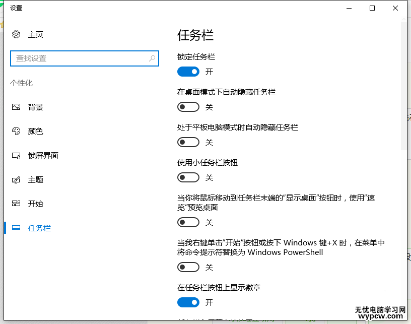 2、現(xiàn)在就來取消掉它,在任務(wù)欄的空白欄處,右擊,“設(shè)置”,出現(xiàn)了個(gè)性化選擇窗口如下;