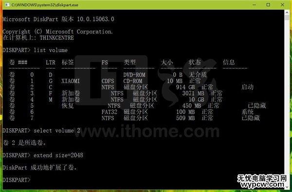 為當(dāng)前選中的卷從下一個(gè)連續(xù)的未分配空間中擴(kuò)展進(jìn)2048M的空間