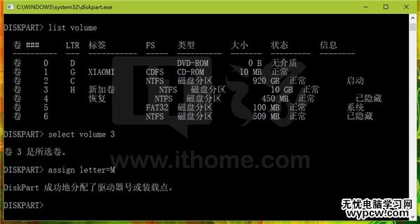 將當(dāng)前選中的卷的驅(qū)動(dòng)器號(hào)設(shè)置為M