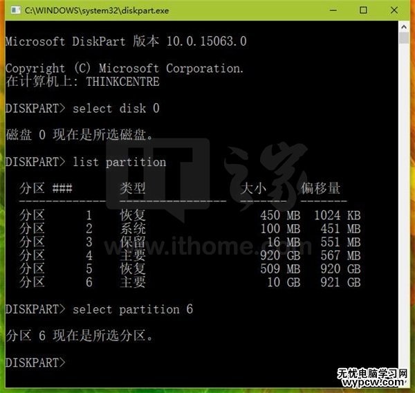 在當(dāng)前磁盤(pán)中選中第6個(gè)分區(qū)
