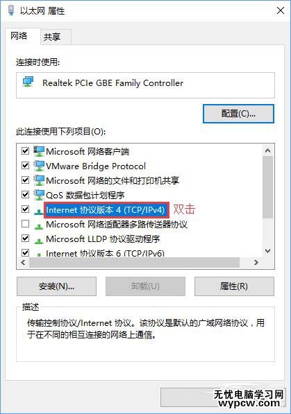 3、從打開的“本地連接 屬性”窗口中,雙擊“Inte.net協議(TCP/IP V4)”;