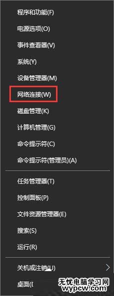 1、在開始菜單上單擊鼠標右鍵,選擇【網絡連接】;