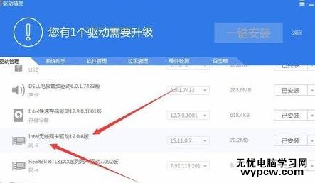 第一 用驅動精靈安裝驅動 箭頭所指即為無線網卡驅動