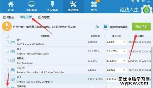備份好之后 當無線網卡出現問題時 運行驅動人生的驅動還原 點擊無線網卡驅動 然后開始還原 然后重啟電腦就好了