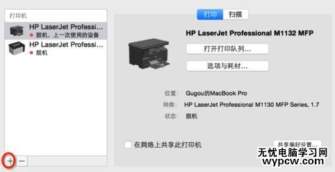 點擊 左下角處的加號,這樣就表示可以添加打印機了,如果想刪掉打印機的話,可以先選中上面的打印機,然后按減號!