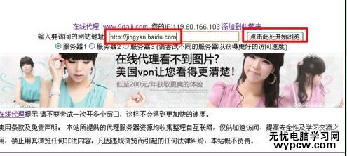 2上網搜索“在線代理”,并從搜索結果頁面中隨便選擇一個網頁在線代理頁面進入。