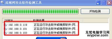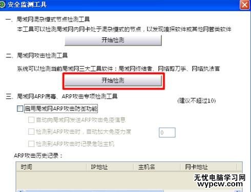 接下來點擊“局域網攻擊 開始檢測”按鈕。