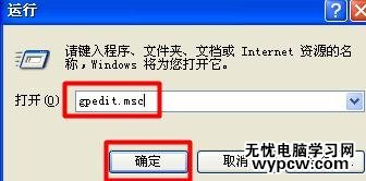 2打開 “運行”對話框,輸入“gpedit.msc”并按“確定”按鈕。