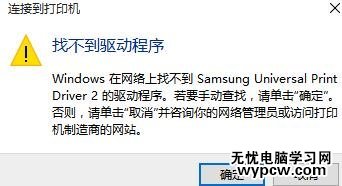選擇后,如果正常就會自動添加打印機了。但也會遇見這個情況,提示“找不到驅動程序”,這個時候就需要安裝打印機驅動。