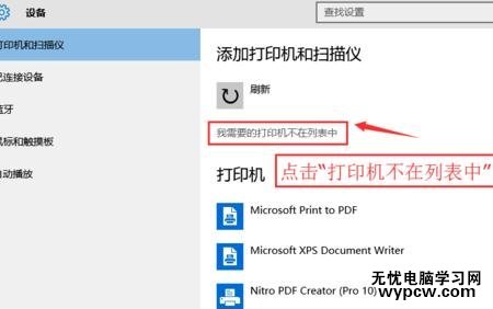 在彈出新窗口中,找到“添加打印機或掃描儀”。點擊后會出現“正在搜索打印機或掃描儀”,這個時候稍等一下,可以看到“我需要的打印機不在列表中”。