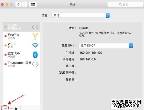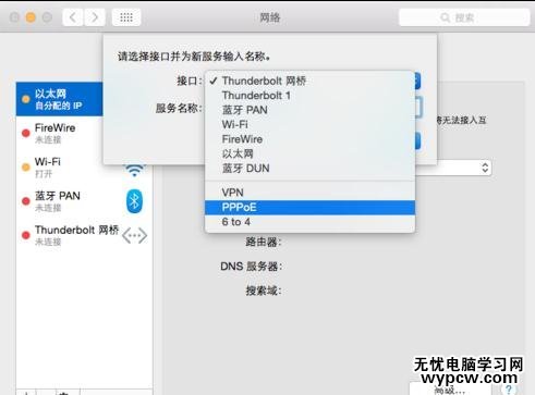 打開以后就能開到我們的網(wǎng)絡(luò)設(shè)置,看到上邊有一個(gè)以太網(wǎng),看待就是屬于以太網(wǎng),所以我們可以在以太網(wǎng)里邊新建,也可以直接新建。這里我就直接新建,點(diǎn)擊左下角的“+”按鈕。然后選擇接口為PPPoE,