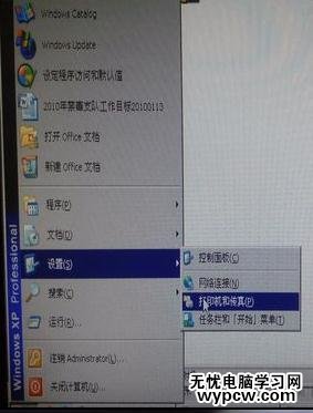 在有打印機的電腦上,點擊開始、設置、打印機和傳真,鼠標右鍵點擊共享。