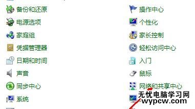 打開控制面板之后,找到網(wǎng)絡(luò)和共享中心這個選項,然后打開。