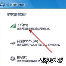 在選擇連接方式這個頁面中,如果你有無線網(wǎng)絡(luò),就會在下面的列表中顯示出一個無線連接的選項。用鼠標(biāo)點擊一下這個選項,然后點擊確定。