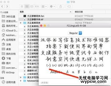 2想要在安裝前先瀏覽字體,所有ttf格式字體Mac都支持點擊空格——使用space bar查看