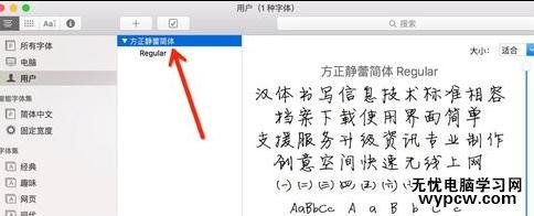 7找到我們剛剛安裝的方正靜蕾了,說明我們安裝成功