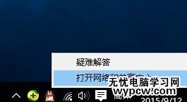 接下來右擊任務欄“網絡”圖標,從其右鍵菜單中選擇“打開網絡和共享中心”項進入。