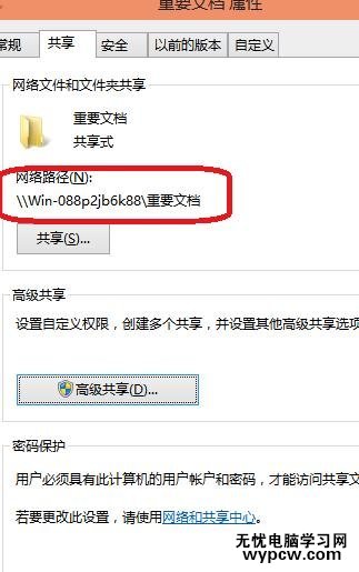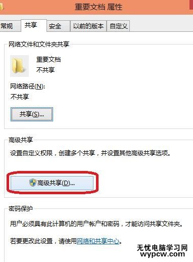 3、出現了重要文檔屬性,在單擊“高級共享”。