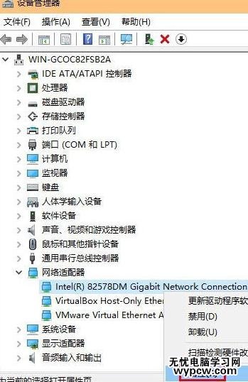 找到網絡適配器,在有問題的以太網卡或者無線網卡上點擊右鍵,選擇“屬性”(或直接雙擊該網卡),如下圖——