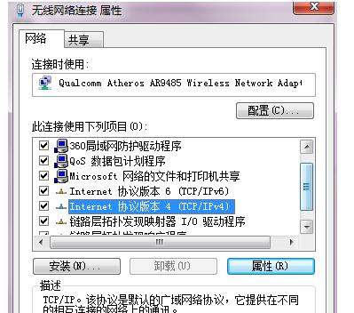 選擇“Internet 協(xié)議版本4”然后單擊“屬性”