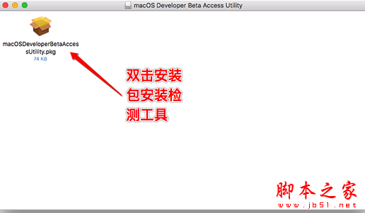 1、下載完整的macOS 10.15測試版升級工具.dmg的文件,打開文件,雙擊.pkg安裝包運行即可檢測到最新的macOS Catalina測試版系統升級信息。