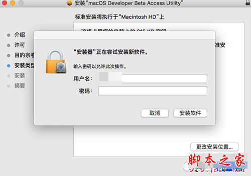 安裝macOS 10.15測試版升級工具過程中提示需要更改設置,需要輸入密碼,這里就是輸你的開機密碼。基本在使用安裝包安裝一些應用或工具的時候都會彈這個。