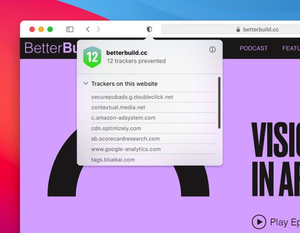 隱私始終內置于 Safari 中,新的隱私報告功能提供了有關 Safari 如何保護網絡瀏覽活動的更多可見性。
