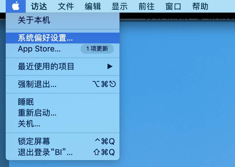 1、首先我們點擊左上角的LOGO蘋果圖標,在彈出的菜單中選擇系統偏好設置,如下圖所示。