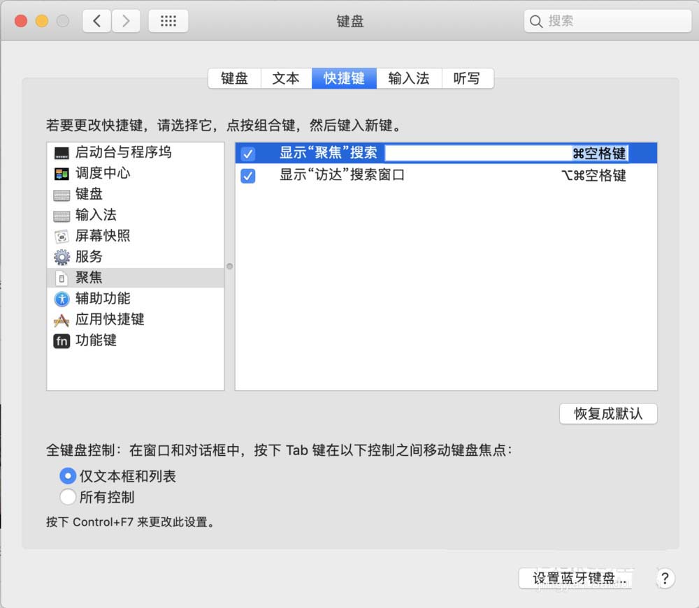 以上就是Mac系統聚焦功能默認的快捷鍵修改的方法,希望大家喜歡,請繼續關注武林網。